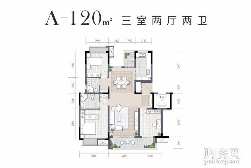 3室2廳2衛,A-120(3室2廳,120平,東南)