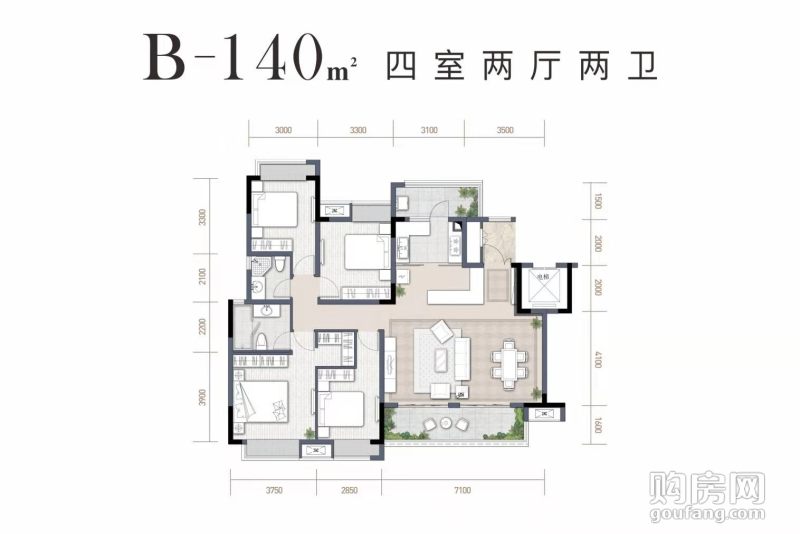 4室2廳2衛,B-140(4室2廳,140平,南)