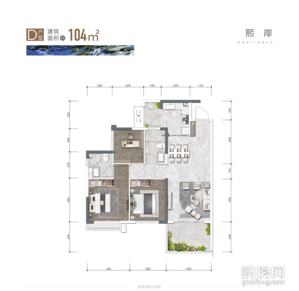 D戶型(3室2廳,104平,南)