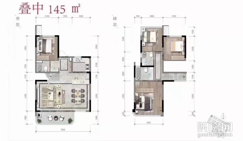 領地悅府-中疊戶型(4室3廳,145平,南北)