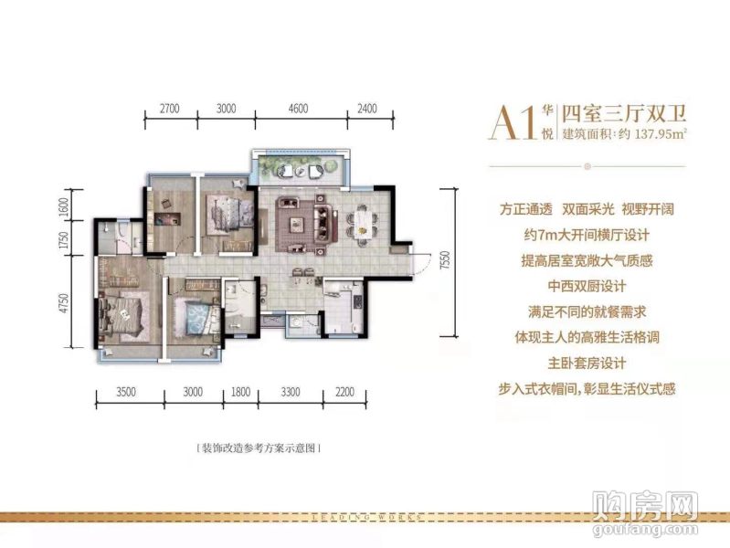 領地悅府A1戶型(4室3廳,139.55平,南北)